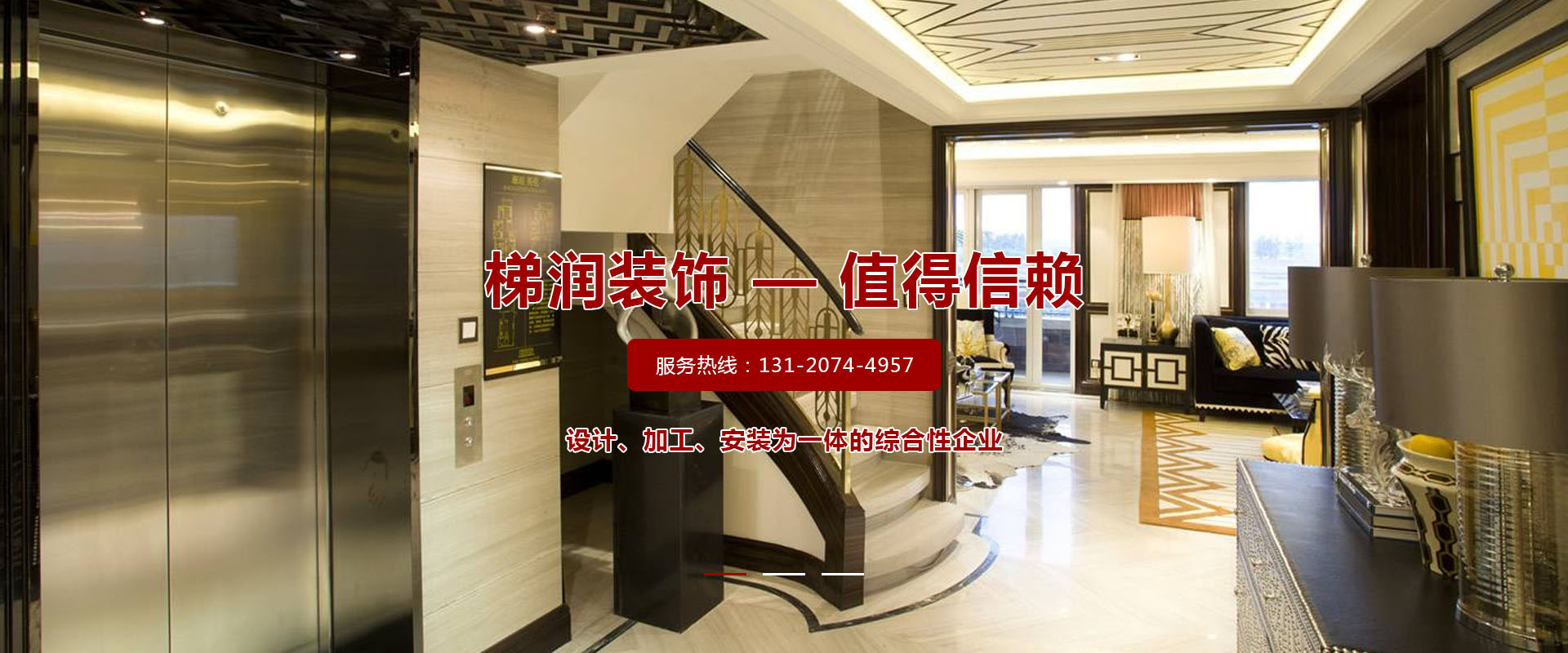 電梯裝潢包括:高檔轎廂裝潢、觀(guān)光梯,別墅梯及自動(dòng)扶梯等裝潢,電梯轎廂裝飾吊頂加工、各類(lèi)扶手加工、各種大理石及PVC地面裝飾,廳轎門(mén)裝飾和大小門(mén)套及前壁裝飾等。